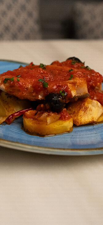Merluza con caponata